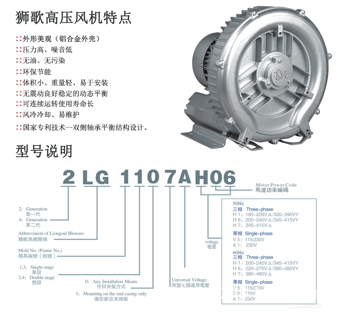 产品详情:狮歌2LG810-7AH17,5.5kw高压风机特征: